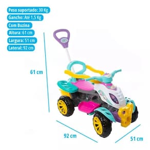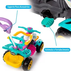 Benefícios do Produto: O Quadriciclo Menina Maral acompanha as diferentes fases de desenvolvimento da criança, proporcionando entretenimento e aprendizado. Seu design moderno e resistente, aliado à tecnologia internacional de alta qualidade, garante segurança e durabilidade.