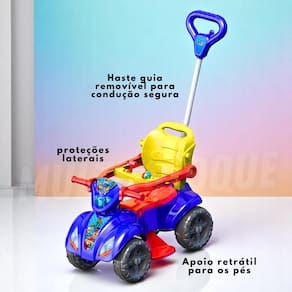 Quadriciclo infantil azul em formato de cachorro - menino Quadriciclo infantil dog menino - azul Você já pensou na importância de as crianças pequenas explorarem o mundo de maneira segura e divertida Sem um brinquedo apropriado, elas podem perder a chance de desenvolver habilidades essenciais enquanto se divertem. O quadriciclo infantil é a solução ideal para garantir que seu filho tenha momentos de lazer incríveis com um design atraente e seguro, ele oferece conforto e praticidade, permitindo que as crianças se sintam livres e confiantes em suas aventuras. A haste guia acoplada proporciona controle total para os pais, enquanto o apoio para os pés e as proteções laterais asseguram segurança em cada passeio. Benefícios - estimula o desenvolvimento do equilíbrio e da coordenação motora - aumenta a autonomia e a autoconfiança da criança - design adaptável que acompanha o crescimento - inclui adesivos exclusivos para personalização Especificações técnicas - material: plástico - peso: aproximadamente 5kg - dimensões: quadriciclo: larg.: 35cm x alt.: 53cm x comp.: 60cm; haste: larg.: 3cm x alt.: 75cm - cor: colorido vermelho, azul, amarelo, preto, branco - registro inmetro: 009183/2024 Conteúdo da embalagem - 01 quadriciclo infantil dog menino - azul Não perca a oportunidade de proporcionar ao seu filho momentos de diversão e aprendizado adquira já o quadriciclo e veja a alegria dele ao explorar o mundo Informações importantes sobre a compra - com de fábrica Dúvidas frequentes: 2 - em quanto tempo meu pedido será enviado 3 - é seguro fazer esta compra Resposta: desde a fundação da nossa empresa, temos milhares de clientes satisfeitos em outras lojas online. Somos uma loja oficial neste marketplace. Além das garantias da plataforma, oferecemos de fábrica. 4 - os produtos têm Resposta: sim, oferecemos de 30 dias em todos os nossos produtos. Se houver qualquer problema, resolveremos da melhor forma possível. 5 - esta compra é segura Resposta: sim, garantimos total segurança na sua compra e sigilo dos seus dados. 6 - e se eu não gostar do produto, terei meu dinheiro de volta Resposta: de acordo com o cdc código de defesa do consumidor , todo cliente de compras online tem até 7 dias para devolver o produto em caso de arrependimento, sem custo na devolução. Você será reembolsado em 100% do valor da compra. Caso tenha alguma dúvida, envie-nos uma mensagem e responderemos o mais rápido possível. Homologação Inmetro: CE-BRI/ICEPEX-N 01394-35-2 Marca: Não Informado