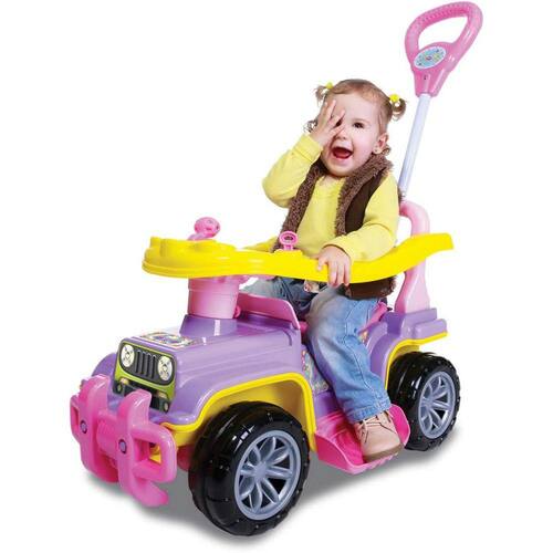 Descritivo do Produto: Explore os primeiros passos do seu pequeno aventureiro com o Jip Jip Menina da Maral. Este carrinho é um companheiro confiável e versátil para os momentos de diversão e aprendizado. Com design colorido e atrativo, o Jip Jip Menina oferece uma experiência de passeio segura e confortável para os pequenos exploradores.