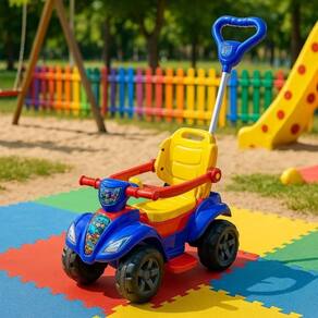 Quadriciclo Infantil Dog Menino - Azul Quadriciclo Infantil Dog Menino - Azul Prepare-se para ver a diversão tomar conta dos momentos de lazer, um brinquedo desenvolvido especialmente para crianças de 1 a 3 anos. Ele une o que há de mais importante nessa fase: segurança, conforto, praticidade e muito entretenimento! Com design encantador, este quadriciclo é o companheiro perfeito para os primeiros passeios. Ele foi pensado para acompanhar o crescimento da criança, se adaptando às suas necessidades e fases de desenvolvimento. A haste guia acoplada permite que os pais conduzam com facilidade e total controle da direção, tornando os passeios mais tranquilos e seguros. O apoio para os pés retrátil proporciona conforto extra durante a condução, enquanto as proteções laterais mantêm os pequenos bem seguros, evitando quedas ou movimentos bruscos. Mas não é só isso! Ele também é uma ferramenta educativa, pois estimula o desenvolvimento do equilíbrio corporal, da coordenação motora fina e ampla, além de incentivar a autonomia e a autoconfiança da criança, que aos poucos começa a descobrir a liberdade de se movimentar com mais independência. E para deixar a brincadeira ainda mais especial, o produto acompanha adesivos exclusivos, permitindo que o carrinho seja decorado. Seu pequeno vai amar!