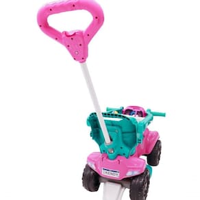 Segurança em primeiro lugar: haste guia para controle total dos pais e proteções laterais que evitam tombosConforto garantido: apoio para os pés retrátil que se adapta às necessidades da criançaEstimula o desenvolvimento: trabalha o equilíbrio corporal, a coordenação motora e a autoconfiançaInteratividade personalizada: acompanha adesivos exclusivos para a criança decorar como quiserCaracterísticas:Material: plásticoPeso: aproximadamente 5kgDimensões do quadriciclo: largura 35cm x altura 53cm x comprimento 60cmDimensões da haste: largura 3cm x altura 75cmCor: rosa, verde, preto e brancoRegistro Inmetro: 009183/2024Conteúdo: 01 Quadriciclo Infantil Dog Menina Rosa