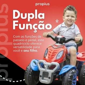 Passeio ou pedal Você decide O quadriciclo tem duas funções. Na função passeio, você terá total controle sobre a direção do quadriciclo, guiando seu filho enquanto ele se diverte. E na função pedal, seu pequeno aventureiro tem a liberdade de explorar por conta própria.