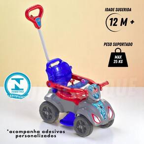 Quadriciclo infantil spyder - baby em cores Quadriciclo infantil baby - spyder Já pensou como é frustrante para as crianças não terem um brinquedo que as permita explorar e se divertir ao ar livre Sem um quadriciclo, os pequenos podem perder a oportunidade de viver momentos incríveis de aventura e aprendizado. O quadriciclo é a solução ideal para transformar os passeios em experiências memoráveis com um design que prioriza conforto e segurança, ele permite que as crianças se divirtam enquanto desenvolvem habilidades essenciais, como equilíbrio e coordenação. Além disso, a haste guia facilita o controle para os pais, garantindo passeios tranquilos e seguros. Benefícios - estimula a autonomia e a confiança da criança - proporciona conforto e segurança durante o uso - facilita o transporte de objetos pessoais com o suporte integrado Especificações técnicas - material: plástico - peso: aproximadamente 5kg - dimensões: quadriciclo: larg.: 35cm x alt.: 53cm x comp.: 60cm; haste: larg.: 3cm x alt.: 75cm - cor: colorido cinza, vermelho, azul, preto, branco - registro inmetro: 009183/2024 Conteúdo da embalagem - 01 quadriciclo infantil baby - spyder Não deixe seu filho perder a chance de viver aventuras incríveis adquira já o quadriciclo e proporcione momentos de diversão e aprendizado Informações importantes sobre a compra - de fábrica Dúvidas frequentes: 2 - qual o prazo para envio do meu pedido 3 - a compra é confiável Resposta: temos milhares de clientes satisfeitos em outras lojas online desde a fundação da nossa empresa. Somos uma loja oficial neste marketplace e oferecemos todas as garantias da plataforma, além da de fábrica. 4 - os produtos têm Resposta: sim, oferecemos de 30 dias em todos os nossos produtos. Qualquer problema será tratado da melhor forma possível. 5 - a compra é segura Resposta: sim, garantimos total segurança na sua compra e sigilo dos seus dados. 6 - e se eu não gostar do produto, posso devolver e ter meu dinheiro de volta Resposta: segundo o cdc código de defesa do consumidor , todo cliente de compras online tem até 7 dias para devolver o produto em caso de arrependimento, sem custo na devolução. Você será reembolsado em 100% do valor da compra. Se tiver alguma dúvida, envie uma mensagem e responderemos o mais rápido possível. Homologação Inmetro: 5170/2019-BRI-26 Marca: Não Informado