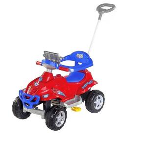 A criançada vai ser divertir de montão com o quadri toys da magic toys ele tem painel com luzes e sons, porta celular, aro de proteção, empurrador direcionável e ainda acompanha um capacete