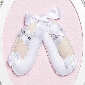 A decoração é feita com um par de sapatilhas de bailarina em feltro.