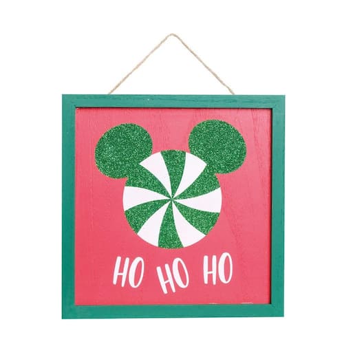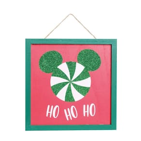 Quadro decorativo Disney vermelha com borda verde escrito "HoHoHo" em branco e com silhueta de Mickey em verde. - Cor Predominante: VERMELHO - Materia Prima: 100% Madeira - Instruções de Limpeza: Limpar somente com espanador - Destaques: O encanto e a magia da Disney em seu Natal ! Nossa linha de Natal Disney traz uma coleção com itens encantadores que deixarão sua Noite Feliz ainda mais mágica.