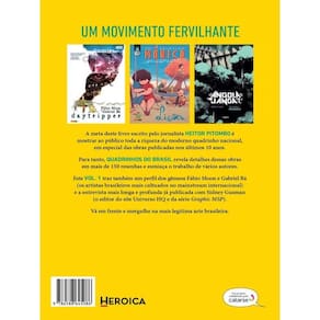 De todos os cantos do país afloram histórias das mais variadas temáticas. São trabalhos de ponta, criados por talentosos quadrinhistas como os gêmeos Fábio Moon e Gabriel Bá, Danilo Beyruth, Marcello Quintanilha, Bianca Pinheiro e Marcelo D’Salete, entre tantos outros. Para documentar esse fértil movimento, surge QUADRINHOS DO BRASIL: VOL. 1, o novo livro do jornalista Heitor Pitombo. Neste primeiro volume, o autor traz um perfil dos gêmeos Fábio Moon e Gabriel Bá (os artistas brasileiros mais cultuados no mainstream internacional), a entrevista mais longa e profunda já publicada com Sidney Gusman (o editor do site Universo HQ e da série Graphic MSP) e mais de 150 resenhas e esmiuça o trabalho de vários quadrinhistas ao longo da última década. Vá em frente e mergulhe na mais legítima arte brasileira. Marca: HEROICA EDITORA