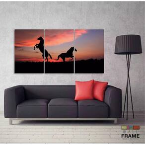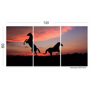 Quadro 2 Cavalos Por do Sol 120x60 3 peças em Tecido