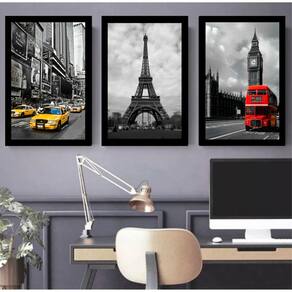 Kit com 3 quadros. - Medida de cada quadro: 43x63 medida externa . - Moldura com madeira de reflorestamento, altíssima qualidade e acabamento 100% liso. - Gravura no material vinil brilho. - Não necessita de vidro, deixando assim seu quadro leve e sem risco de quebra no transporte. - Fundo de MDF de 2mm. - Pendurador Fixo, para fácil instalação na sua parede. - Limpeza com pano úmido. - Gravura sem risco nenhum de desbotar. Marca: Molduras pereira Ean: 0751320081476