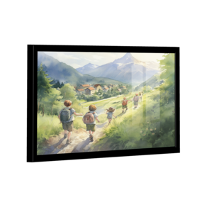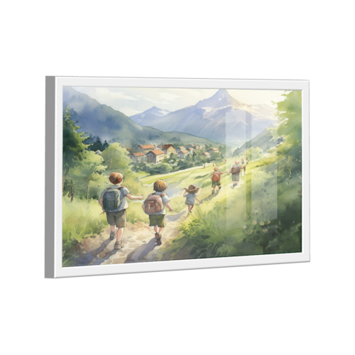 Quadro A Caminho Da Escola--BR ARTES Moldura Branca e Vidro - Pequeno 60x40 -
