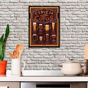 Quadro a cerveja e seus copos 33x24cm - com vidro Moldura: madeira preta Informações do produto Decoração para quarto, sala, cozinha, escritório, área gourmet e muito mais. Chega de paredes vazias medidas - cada peça tem 33x24cm a4 . Material do papel - papel fotográfico brilhante de altíssima resolução Acabamento - todos os quadros são acompanhados de vidro para proteção da imagem. - Moldura em madeira maciça na cor preta e pendurador . - Os quadros são embalados de forma segura com plástico bolha com camada dupla de acordo com o tamanho dos quadros. - de 3 meses. Meu quadro chegou. Como posso fixá-lo Você precisa apenas de um martelo e um prego, pois os quadros já vão acompanhados de penduradores. Esta é a forma mais indicada. Como posso limpar meu quadro A limpeza é feita como um móvel comum da sua casa. Apenas um pano seco ou espanador são suficientes para tal