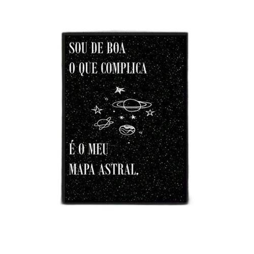 Quadro a culpa é do meu mapa astral 45x34cm - com vidro Moldura: madeira preta Informações do produto Decoração para quarto, sala, cozinha, escritório, área gourmet e muito mais. Chega de paredes vazias medidas - cada peça tem 45x34cm a3 . Material do papel - papel fotográfico brilhante de altíssima resolução Acabamento - todos os quadros são acompanhados de vidro para proteção da imagem. - moldura em madeira maciça na cor preta e pendurador. - os quadros são embalados de forma segura com plástico bolha com camada dupla de acordo com o tamanho dos quadros. - de 3 meses. Meu quadro chegou. Como posso fixá-lo Você precisa apenas de um martelo e um prego, pois os quadros já vão acompanhados de penduradores. Esta é a forma mais indicada. Como posso limpar meu quadro A limpeza é feita como um móvel comum da sua casa. Apenas um pano seco ou espanador são suficientes para tal Marca: Não Informado
