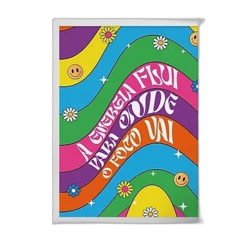 Quadro a energia flui para onde a atenção vai 33x24cm Moldura: madeira branca Informações do produto decoração para quarto, sala, cozinha, escritório, área gourmet e muito mais. Chega de paredes vazias Medidas - cada peça tem 33x24cm a4 . Material do papel - papel fotográfico brilhante de altíssima resolução Acabamento - todos os quadros são acompanhados de uma película de acetato para proteção da imagem. - os quadros são embalados de forma segura com plástico bolha com camada dupla de acordo com o tamanho dos quadros. - de 3 meses. Meu quadro chegou. Como posso fixá-lo Você precisa apenas de um martelo e um prego, pois os quadros já vão acompanhados de penduradores. Esta é a forma mais indicada. Caso prefira, você pode utilizar uma fita dupla face neste caso, sugerimos de alta qualidade para evitar que descole e seu quadro caia . Como posso limpar meu quadro A limpeza é feita como um móvel comum da sua casa. Apenas um pano seco ou espanador são suficientes para tal