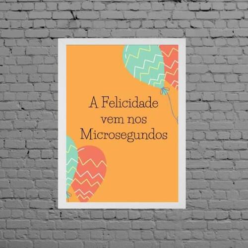 Quadro a felicidade vem nos microsegundos 45x34cm Moldura: madeira branca Informações do produto tire todas as suas dúvidas no descritivo abaixo: decoração para quarto, sala, cozinha, escritório, área gourmet e muito mais. Chega de paredes vazias medidas - cada peça tem 45x34cm a3 . Material do papel - papel fotográfico brilhante de altíssima resolução acabamento - todos os quadros são acompanhados de uma película de acetato para proteção da imagem. - moldura em madeira maciça na cor branca e pendurador móvel que pode ser retirado facilmente caso deseje fixar com fita dupla face. - os quadros são embalados de forma segura com plástico bolha com camada dupla de acordo com o tamanho dos quadros. Ean: 7892091098935