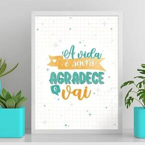Quadro a vida é agora agradece e vai 33x24cm Moldura: madeira branca Informações do produto tire todas as suas dúvidas no descritivo abaixo: decoração para quarto, sala, cozinha, escritório, área gourmet e muito mais. Chega de paredes vazias medidas - cada peça tem 33x24cm a4 . Material do papel - papel fotográfico brilhante de altíssima resolução acabamento - todos os quadros são acompanhados de uma película de acetato para proteção da imagem. - os quadros são embalados de forma segura com plástico bolha com camada dupla de acordo com o tamanho dos quadros. - de 3 meses. Meu quadro chegou. Como posso fixá-lo Você precisa apenas de um martelo e um prego, pois os quadros já vão acompanhados de penduradores. Esta é a forma mais indicada. Caso prefira, você pode utilizar uma fita dupla face neste caso, sugerimos de alta qualidade para evitar que descole e seu quadro caia . Como posso limpar meu quadro A limpeza é feita como um móvel comum da sua casa. Apenas um pano seco ou espanador são suficientes para tal Marca: Não Informado Ean: 7894968146572