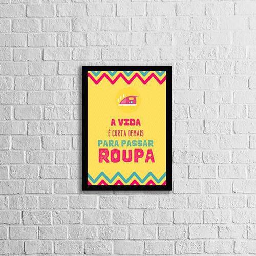 Quadro a vida é curta demais para passar roupa 24x18cm Moldura: madeira preta Informações do produto tire todas as suas dúvidas no descritivo abaixo: decoração para quarto, sala, cozinha, escritório, área gourmet e muito mais. Chega de paredes vazias medidas - cada peça tem 24x18cm a5 . Material do papel - papel fotográfico brilhante de altíssima resolução acabamento - todos os quadros são acompanhados de uma película de acetato para proteção da imagem. - moldura em madeira maciça na cor branca e pendurador móvel que pode ser retirado facilmente caso deseje fixar com fita dupla face. - os quadros são embalados de forma segura com plástico bolha com camada dupla de acordo com o tamanho dos quadros. - de 3 meses prazo de envio pedimos 24 horas úteis no máximo para enviar seu pedido após o envio, segue os prazos normais dos correios, cerca de 7 exceto para norte e nordeste, que pode ser de até 14 . Em diversas cidades, este prazo normalmente é reduzido, mas depende do prazo dos correios. Meu quadro chegou. Como posso fixá-lo Você precisa apenas de um martelo e um prego, pois os quadros já vão acompanhados de penduradores. Esta é a forma mais indicada. Caso prefira, você pode utilizar uma fita dupla face neste caso, sugerimos de alta qualidade para evitar que descole e seu quadro caia . Como posso limpar meu quadro A limpeza é feita como um móvel comum da sua casa. Apenas um pano seco ou espanador são suficientes para tal Marca: Não Informado