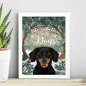 Quadro a vida é melhor com cães 24x18cm - com vidro Moldura: madeira branca Informações do produto tire todas as suas dúvidas no descritivo abaixo: decoração para quarto, sala, cozinha, escritório, área gourmet e muito mais. Chega de paredes vazias medidas - cada peça tem 24x18cm a5 . Material do papel - papel fotográfico brilhante de altíssima resolução acabamento - todos os quadros são acompanhados de vidro para proteção da imagem. - moldura em madeira maciça na cor preta ou branca conforme produto escolhido e pendurador . - os quadros são embalados de forma segura com plástico bolha com camada dupla de acordo com o tamanho dos quadros. Garantia - garantia de 3 meses. Meu quadro chegou. Como posso fixá-lo Você precisa apenas de um martelo e um prego, pois os quadros já vão acompanhados de penduradores. Esta é a forma mais indicada. Como posso limpar meu quadro A limpeza é feita como um móvel comum da sua casa. Apenas um pano seco ou espanador são suficientes para tal