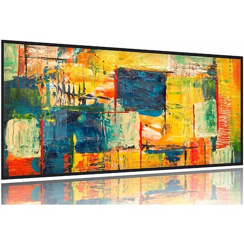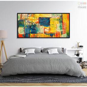 Quadro Abstrato Artístico Colorido Estilo Pintura Vertical Moldura Preta 2x2