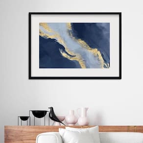 Quadro abstrato azul marinho com dourado - 60x48cm Moldura: madeira preta Informações do produto tire todas as suas dúvidas no descritivo abaixo: decoração para quarto, sala, cozinha, escritório, área gourmet e muito mais. Chega de paredes vazias medidas - cada peça tem 60x48cm . Material do papel - papel fotográfico brilhante de altíssima resolução acabamento - todos os quadros são acompanhados de vidro para proteção da imagem. - moldura em madeira maciça na cor preta ou branca conforme produto escolhido e pendurador. - paspatur branco com 7cm de largura - os quadros são embalados de forma segura com plástico bolha com camada dupla de acordo com o tamanho dos quadros. Garantia - garantia de 3 meses. Meu quadro chegou. Como posso fixá-lo Você precisa apenas de um martelo e um prego, pois os quadros já vão acompanhados de penduradores. Esta é a forma mais indicada. Como posso limpar meu quadro A limpeza é feita como um móvel comum da sua casa. Apenas um pano seco ou espanador são suficientes para tal
