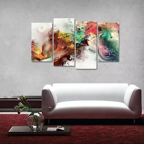 Quadro Abstrato Colorido Sala Escritórios Em Tecido 4 Peças
