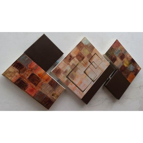 Quadro formado por 3 painéis em forma de losângulos, interligados por estrutura de alumínio. Painel moderno decorativo, pintura acrílica, com textura . Ideal para vários ambientes. Cores: iguais da imagem tamanho: 70x150cm. Os quadros serão enviados desmontados (as três partes separadas), devido ao tamanho do quadro. Mas é fácil de montar.