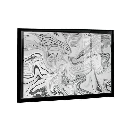 Quadro Abstrato Fluido Branco -- BR ARTES Moldura Preta e Vidro - Grande 118x78 -