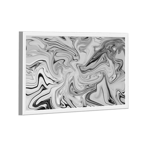 Quadro Abstrato Fluido Branco -- BR ARTES Moldura Branca - Pequeno 60x40 -