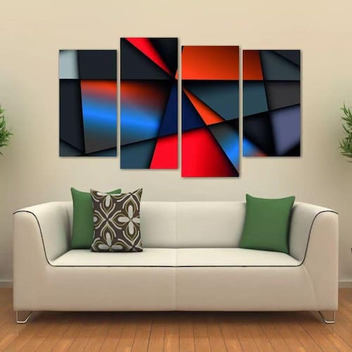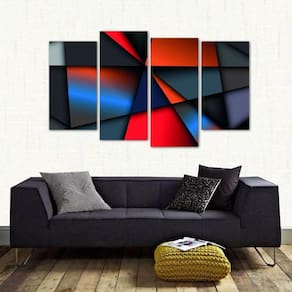 Quadro Abstrato Formas Geométricas Escritório Tecido 4 Peças