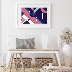 Quadro abstrato geométrico rosa e azul - 60x48cm