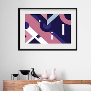 Quadro abstrato geométrico rosa e azul - 60x48cm