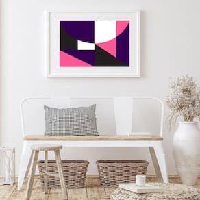 Quadro abstrato geométrico rosa e roxo - 60x48cm Moldura: madeira branca Informações do produto tire todas as suas dúvidas no descritivo abaixo: decoração para quarto, sala, cozinha, escritório, área gourmet e muito mais. Chega de paredes vazias medidas - cada peça tem 60x48cm . Material do papel - papel fotográfico brilhante de altíssima resolução acabamento - todos os quadros são acompanhados de vidro para proteção da imagem. - moldura em madeira maciça na cor preta ou branca conforme produto escolhido e pendurador. - paspatur branco com 7cm de largura - os quadros são embalados de forma segura com plástico bolha com camada dupla de acordo com o tamanho dos quadros. Garantia - garantia de 3 meses. Meu quadro chegou. Como posso fixá-lo Você precisa apenas de um martelo e um prego, pois os quadros já vão acompanhados de penduradores. Esta é a forma mais indicada. Como posso limpar meu quadro A limpeza é feita como um móvel comum da sua casa. Apenas um pano seco ou espanador são suficientes para tal