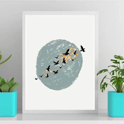 Quadro abstrato pássaros voando 24x18cm Moldura: madeira branca Informações do produto decoração para quarto, sala, cozinha, escritório, área gourmet e muito mais. Chega de paredes vazias Medidas - cada peça tem 24x18cm a5 . Material do papel - papel fotográfico brilhante de altíssima resolução Acabamento - todos os quadros são acompanhados de uma película de acetato para proteção da imagem. - os quadros são embalados de forma segura com plástico bolha com camada dupla de acordo com o tamanho dos quadros. - de 3 meses. Meu quadro chegou. Como posso fixá-lo Você precisa apenas de um martelo e um prego, pois os quadros já vão acompanhados de penduradores. Esta é a forma mais indicada. Caso prefira, você pode utilizar uma fita dupla face neste caso, sugerimos de alta qualidade para evitar que descole e seu quadro caia . Como posso limpar meu quadro A limpeza é feita como um móvel comum da sua casa. Apenas um pano seco ou espanador são suficientes para tal Marca: Não Informado
