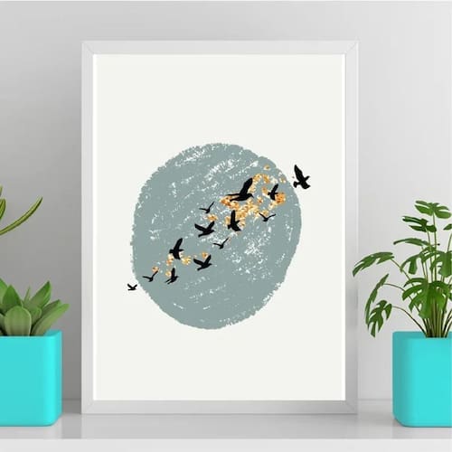 Quadro abstrato pássaros voando 45x34cm Moldura: madeira branca Informações do produto decoração para quarto, sala, cozinha, escritório, área gourmet e muito mais. Chega de paredes vazias Medidas - cada peça tem 45x34cm a3 . Material do papel - papel fotográfico brilhante de altíssima resolução Acabamento - todos os quadros são acompanhados de uma película de acetato para proteção da imagem. - os quadros são embalados de forma segura com plástico bolha com camada dupla de acordo com o tamanho dos quadros. - de 3 meses. Meu quadro chegou. Como posso fixá-lo Você precisa apenas de um martelo e um prego, pois os quadros já vão acompanhados de penduradores. Esta é a forma mais indicada. Caso prefira, você pode utilizar uma fita dupla face neste caso, sugerimos de alta qualidade para evitar que descole e seu quadro caia . Como posso limpar meu quadro A limpeza é feita como um móvel comum da sua casa. Apenas um pano seco ou espanador são suficientes para tal Marca: Não Informado