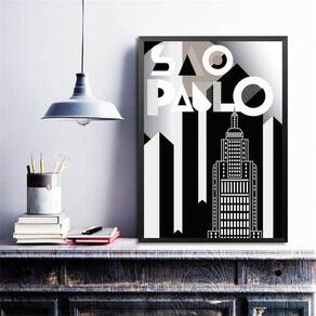 Quadro abstrato poster são paulo 45x34cm - com vidro