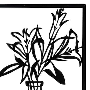 Quadro Adorno Decorativo Vazado em Metal Vaso Tuut O Quadro Adorno Decorativo Vazado em Metal Vaso Tuut é uma peça moderna e sofisticada que traz um toque de elegância e estilo industrial para a decoração do ambiente. Com um design de jarro e folhas em preto, ele é ideal para compor paredes de salas, quartos ou escritórios, adicionando profundidade e charme ao espaço.