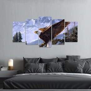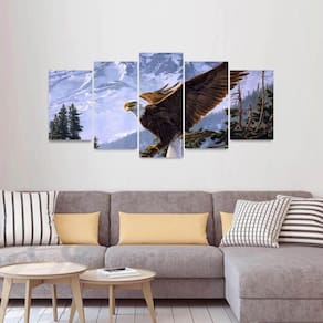 Quadro Águia Voando Artístico Natureza Mosaico 5 Peças