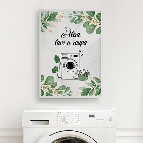 Quadro alexa lave a roupa 24x18cm Moldura: madeira branca