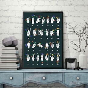 Quadro alfabeto manual - libras 33x24cm - com vidro Moldura: madeira preta Informações do produto tire todas as suas dúvidas no descritivo abaixo: decoração para quarto, sala, cozinha, escritório, área gourmet e muito mais. Chega de paredes vazias medidas - cada peça tem 33x24cm a4 . Material do papel - papel fotográfico brilhante de altíssima resolução acabamento - todos os quadros são acompanhados de vidro para proteção da imagem. - moldura em madeira maciça na cor preta ou branca conforme produto escolhido e pendurador . - os quadros são embalados de forma segura com plástico bolha com camada dupla de acordo com o tamanho dos quadros. Garantia - garantia de 3 meses. Meu quadro chegou. Como posso fixá-lo Você precisa apenas de um martelo e um prego, pois os quadros já vão acompanhados de penduradores. Esta é a forma mais indicada. Como posso limpar meu quadro A limpeza é feita como um móvel comum da sua casa. Apenas um pano seco ou espanador são suficientes para tal