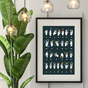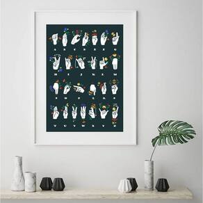 Quadro Alfabeto Manual Libras - 60x48cm - Moldura: Madeira preta