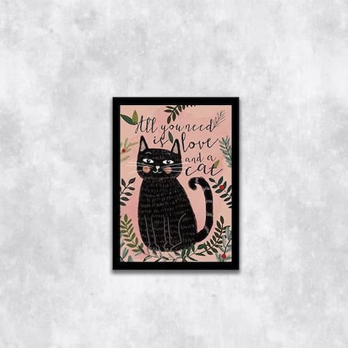 Quadro All You Need Is Love And A Cat 24X18Cm Moldura: madeira branca Informações do produto Decoração para quarto, sala, cozinha, escritório, área gourmet e muito mais. Chega de paredes vazias. Medidas - cada peça tem 24x18cm a5 . Material do papel - papel fotográfico brilhante de altíssima resolução Acabamento - todos os quadros são acompanhados de uma película de acetato para proteção da imagem. - moldura em madeira maciça na cor branca e pendurador móvel que pode ser retirado facilmente caso deseje fixar com fita dupla face. - os quadros são embalados de forma segura com plástico bolha com camada dupla de acordo com o tamanho dos quadros. - de 3 meses Meu quadro chegou. Como posso fixá-lo: Você precisa apenas de um martelo e um prego, pois os quadros já vão acompanhados de penduradores. Esta é a forma mais indicada. Caso prefira, você pode utilizar uma fita dupla face neste caso, sugerimos de alta qualidade para evitar que descole e seu quadro caia . Como posso limpar meu quadro: A limpeza é feita como um móvel comum da sua casa. Apenas um pano seco ou espanador são suficientes para tal Ean: 7892090486153