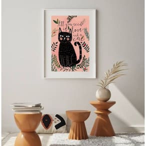 Quadro All You Need Love And Cat - 60x48cm - Moldura: Madeira branca