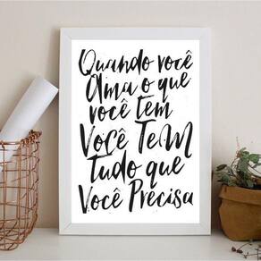 Quadro ame o que você tem - lei atração 33x24cm Moldura: madeira preta Informações do produto tire todas as suas dúvidas no descritivo abaixo: decoração para quarto, sala, cozinha, escritório, área gourmet e muito mais. Chega de paredes vazias medidas - cada peça tem 33x24cm a4 . Material do papel - papel fotográfico brilhante de altíssima resolução acabamento - todos os quadros são acompanhados de uma película de acetato para proteção da imagem. - os quadros são embalados de forma segura com plástico bolha com camada dupla de acordo com o tamanho dos quadros. Garantia - garantia de 3 meses. Meu quadro chegou. Como posso fixá-lo Você precisa apenas de um martelo e um prego, pois os quadros já vão acompanhados de penduradores. Esta é a forma mais indicada. Caso prefira, você pode utilizar uma fita dupla face neste caso, sugerimos de alta qualidade para evitar que descole e seu quadro caia . Como posso limpar meu quadro A limpeza é feita como um móvel comum da sua casa. Apenas um pano seco ou espanador são suficientes para tal