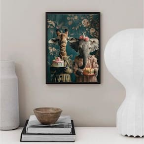 Quadro amigas girafa e elefante 24x18cm