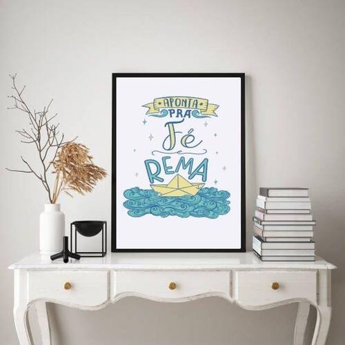 Quadro aponta pra fé e rema 45x34cm Cor: moldura branca Informações do produto tire todas as suas dúvidas no descritivo abaixo: decoração para quarto, sala, cozinha, escritório, área gourmet e muito mais. Chega de paredes vazias. Medidas - cada peça tem 45x34cm a3 . Material do papel - papel fotográfico brilhante de altíssima resolução acabamento - todos os quadros são acompanhados de uma película de acetato para proteção da imagem. - os quadros são embalados de forma segura com plástico bolha com camada dupla de acordo com o tamanho dos quadros. Garantia - garantia de 3 meses. Meu quadro chegou. Como posso fixá-lo Você precisa apenas de um martelo e um prego, pois os quadros já vão acompanhados de penduradores. Esta é a forma mais indicada. Caso prefira, você pode utilizar uma fita dupla face neste caso, sugerimos de alta qualidade para evitar que descole e seu quadro caia . Como posso limpar meu quadro A limpeza é feita como um móvel comum da sua casa. Apenas um pano seco ou espanador são suficientes para tal