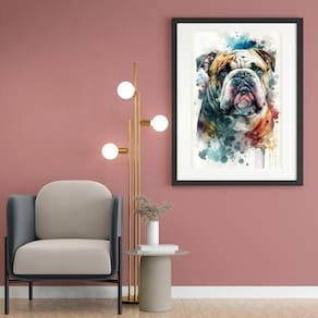Quadro Aquarela Bulldog Inglês - 60x48cm - Moldura: Madeira preta