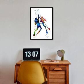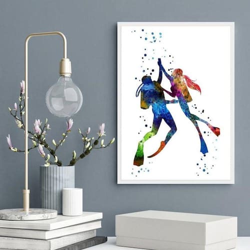 Quadro aquarela casal de mergulhadores 33x24cm - com vidro