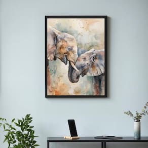 Quadro aquarela elefantes - mãe e filho 45x34cm Cor: moldura preta Informações do produto tire todas as suas dúvidas no descritivo abaixo: decoração para quarto, sala, cozinha, escritório, área gourmet e muito mais. Chega de paredes vazias. Medidas - cada peça tem 45x34cm a3 . Material do papel - papel fotográfico brilhante de altíssima resolução acabamento - todos os quadros são acompanhados de uma película de acetato para proteção da imagem. - os quadros são embalados de forma segura com plástico bolha com camada dupla de acordo com o tamanho dos quadros. Garantia - garantia de 3 meses. Meu quadro chegou. Como posso fixá-lo Você precisa apenas de um martelo e um prego, pois os quadros já vão acompanhados de penduradores. Esta é a forma mais indicada. Caso prefira, você pode utilizar uma fita dupla face neste caso, sugerimos de alta qualidade para evitar que descole e seu quadro caia . Como posso limpar meu quadro A limpeza é feita como um móvel comum da sua casa. Apenas um pano seco ou espanador são suficientes para tal