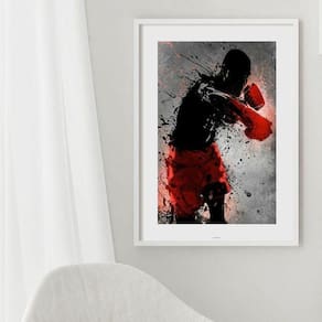Quadro aquarela lutador boxe - 60x48cm Moldura: madeira branca Informações do produto tire todas as suas dúvidas no descritivo abaixo: decoração para quarto, sala, cozinha, escritório, área gourmet e muito mais. Chega de paredes vazias medidas - cada peça tem 60x48cm . Material do papel - papel fotográfico brilhante de altíssima resolução acabamento - todos os quadros são acompanhados de vidro para proteção da imagem. - moldura em madeira maciça na cor preta ou branca conforme produto escolhido e pendurador. - paspatur branco com 7cm de largura - os quadros são embalados de forma segura com plástico bolha com camada dupla de acordo com o tamanho dos quadros. Garantia - garantia de 3 meses. Meu quadro chegou. Como posso fixá-lo Você precisa apenas de um martelo e um prego, pois os quadros já vão acompanhados de penduradores. Esta é a forma mais indicada. Como posso limpar meu quadro A limpeza é feita como um móvel comum da sua casa. Apenas um pano seco ou espanador são suficientes para tal