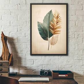 Quadro aquarela moderna folha cores suaves 33x24cm - com vidro