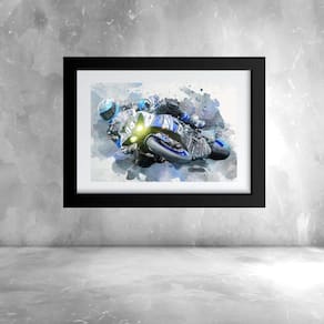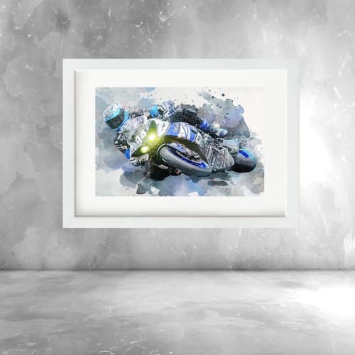 Quadro Aquarela Piloto Motocicleta - 60x48cm - Cor: Moldura Branca